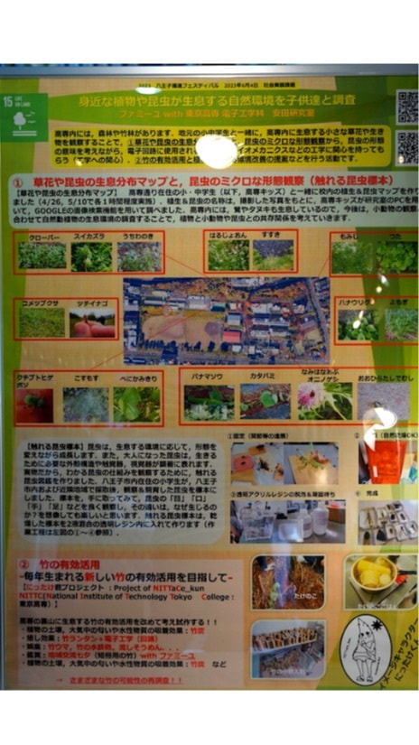 ファミーユ昆虫展で、お馴染みの「昆虫キッズ」(近隣小中学生)が東京高専敷地内の自然環境を、東京高専 安田研究室と共同調査をしました。子供たちが、自然環境の中にどんな?植物・昆虫がいるのか?身近な環境を調べて、子供達にも経験になりました。